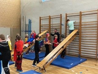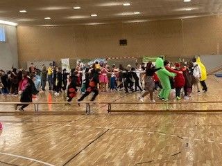 Bevor es zur traditionellen Faschingsfeier der Grundschule ging, gab es zum Frühstück einen leckeren Pfannkuchen von der Bäckerei Ermer, gesponsort vom Förderverein. Im Anschluss ging es endlich wunderschön kostümiert in die Turnhalle. Neben einer zünftigen Disco wurde klassenweise ein sportlicher Parcours absolviert. Den Abschluss bildete eine Polonaise und die Grundschule begab sich in die Ferien.