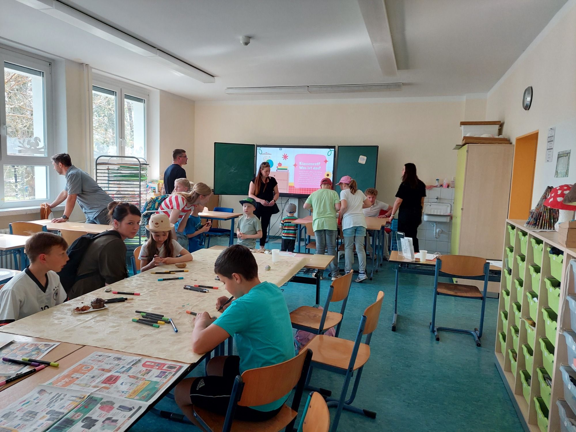 Schon eine Woche lang schauten die Schülerinnen und Schüler der Grundschule Bernsdorf neugierig, was im Schulhaus wohl passieren würde.