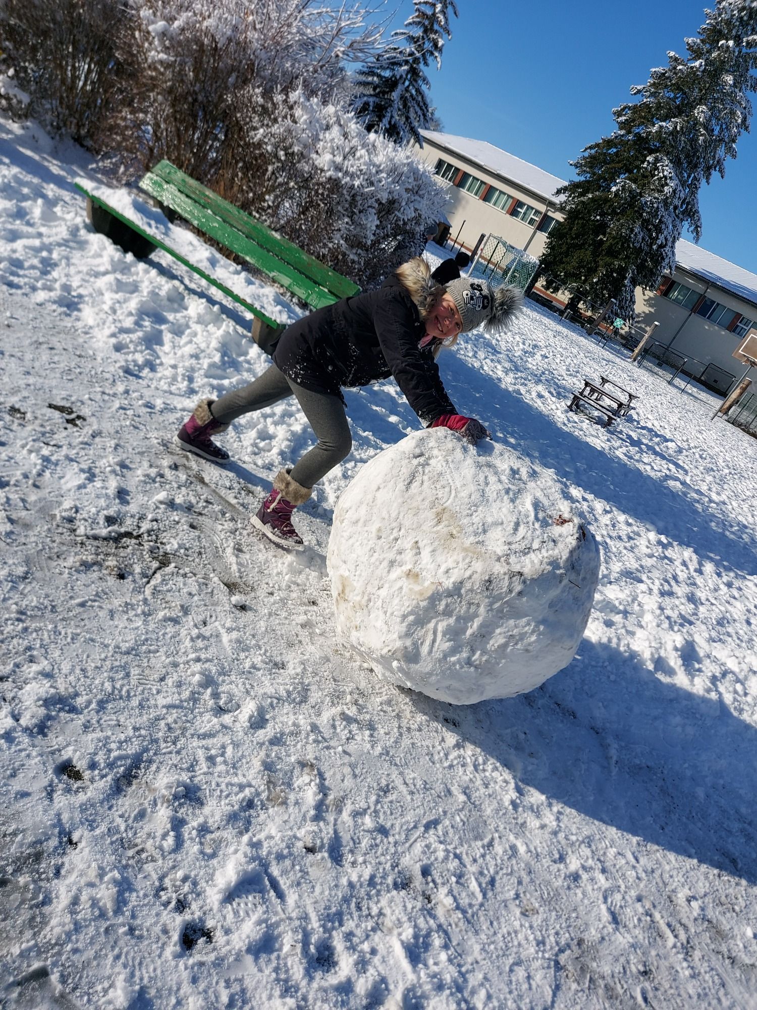Die Schülerinnen und Schüler der Grundschule Bernsdorf haben viel Freude am eisigkalten Schneewetter und vertreiben sich die Hofpausen mit dem Gestalten wunderschöner Schneeskulpturen und Iglus.