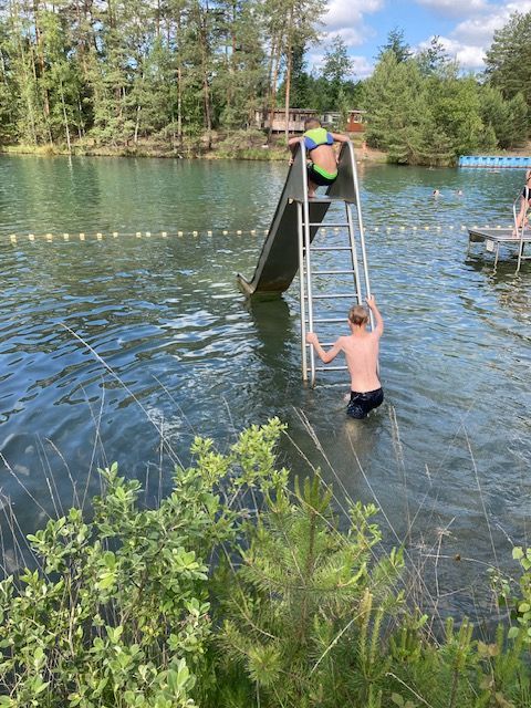 Am 20.06.2025 wanderten alle Kinder mit den Lehrkräften der Grundschule Bernsdorf wie jedes Jahr zum Schuljahresabschluss ins Waldbad. Als alle Kinder angekommen waren, ging es jahrgangsweise ins kalte Nass obwohl bei Außentemperaturen von anfänglichen 15° C das Wasser mit 22° C viel angenehmer war. Die Schüler hatten riesigen Spaß beim Baden, Planschen und Schwimmen im Wasser sowie bei den Spielen im Sand. Interessant waren für alle die großen zutraulichen Karpfen. Dann ging es wieder in die Schule zurück.