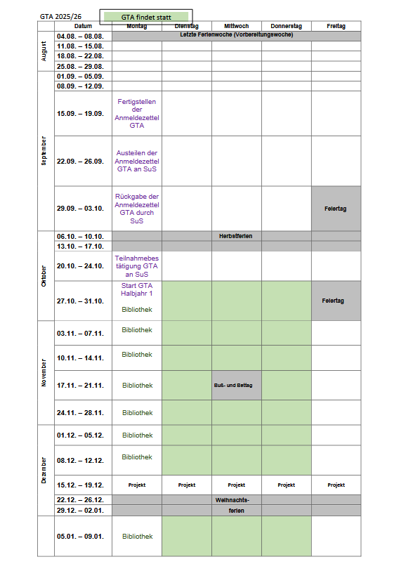 GTA Schuljahr 2025/26